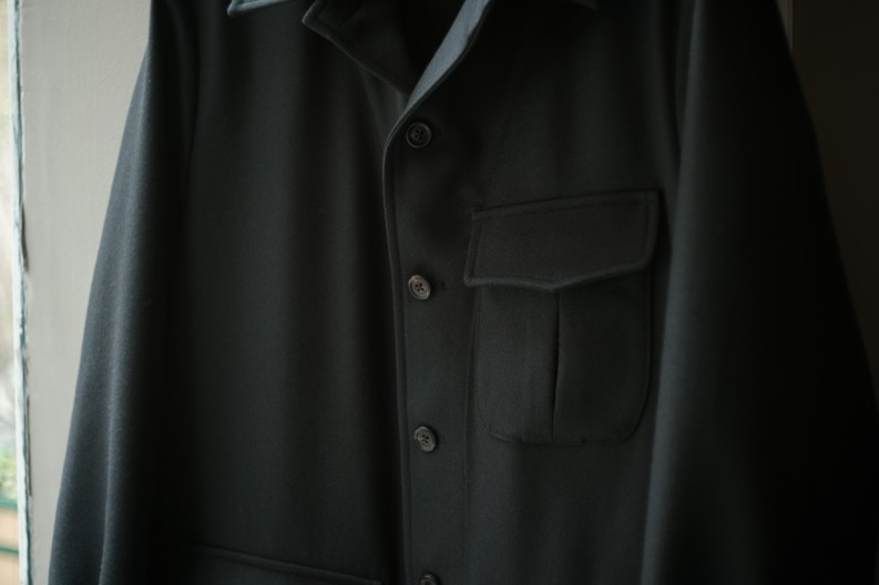 ノルマンディー地方のクチュールハウスで一点ずつ作られているジャケットは佇まいからして只者ではないのですが、着ると主張がないというか、自然によく馴染むんですよ。