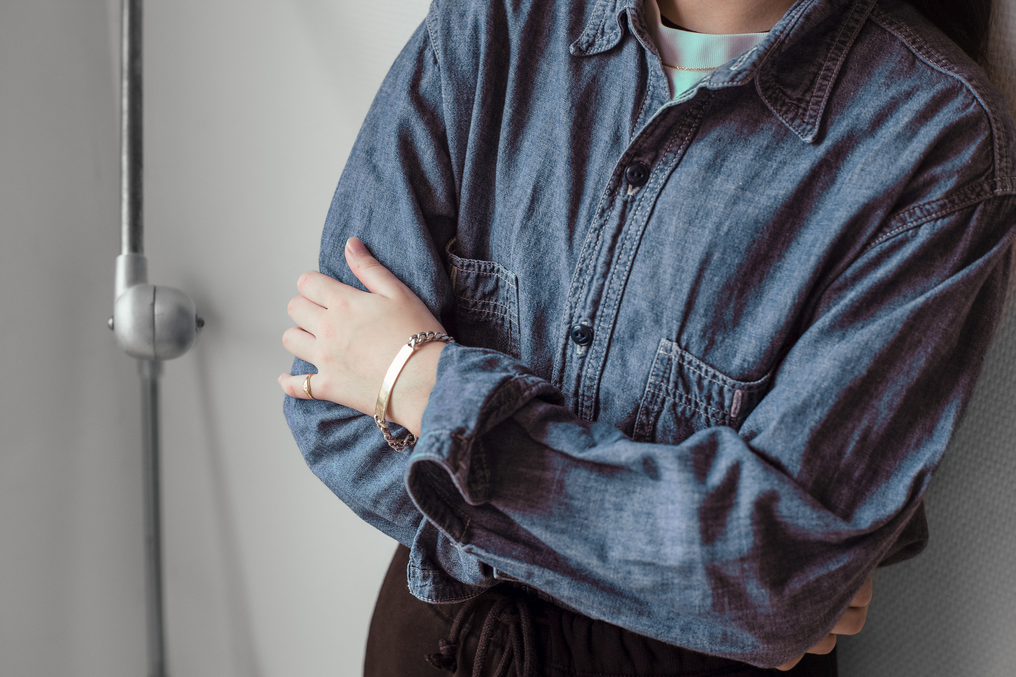 こういうカジュアルなスタイリングにシンプルなジュエリーって合いますよね。