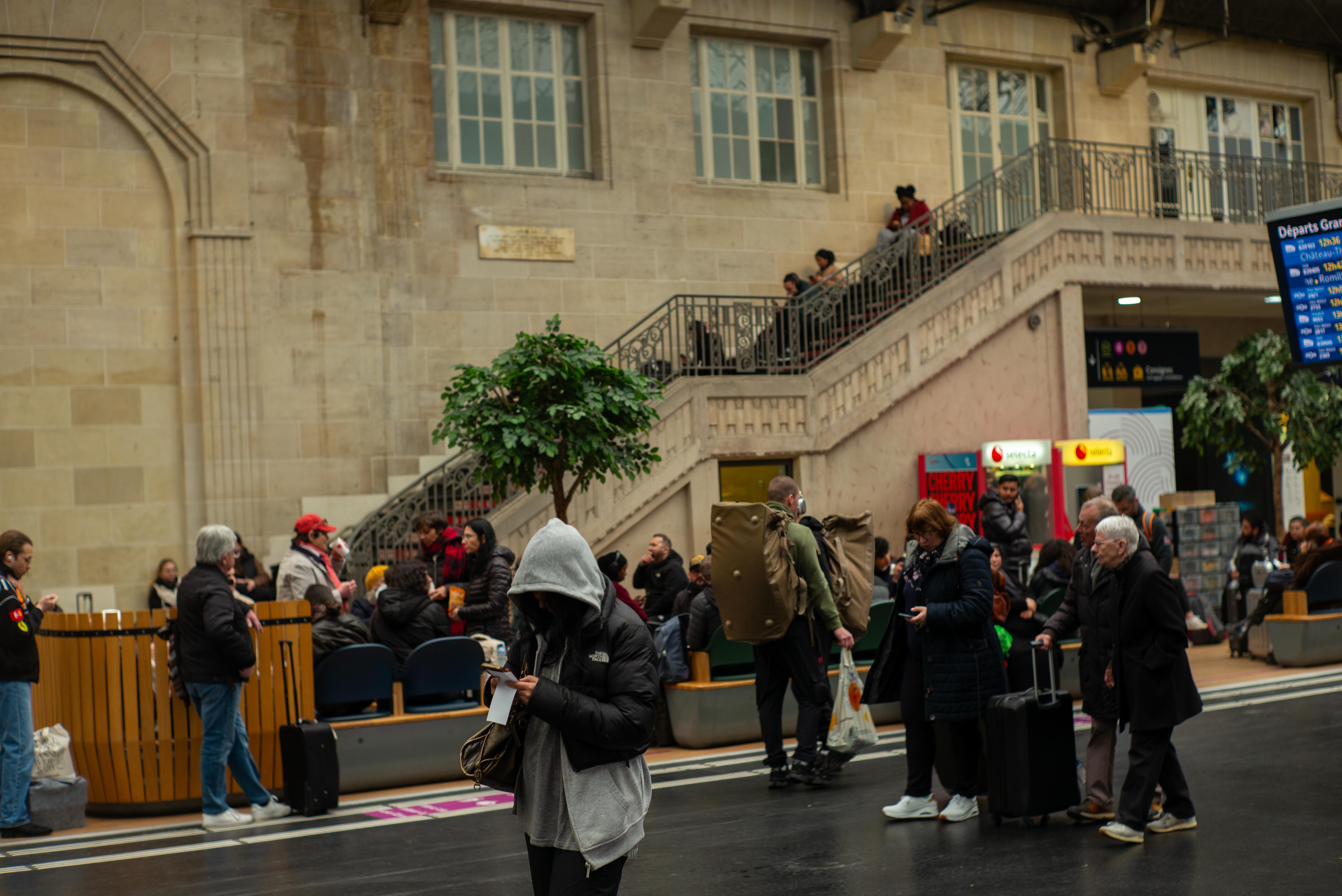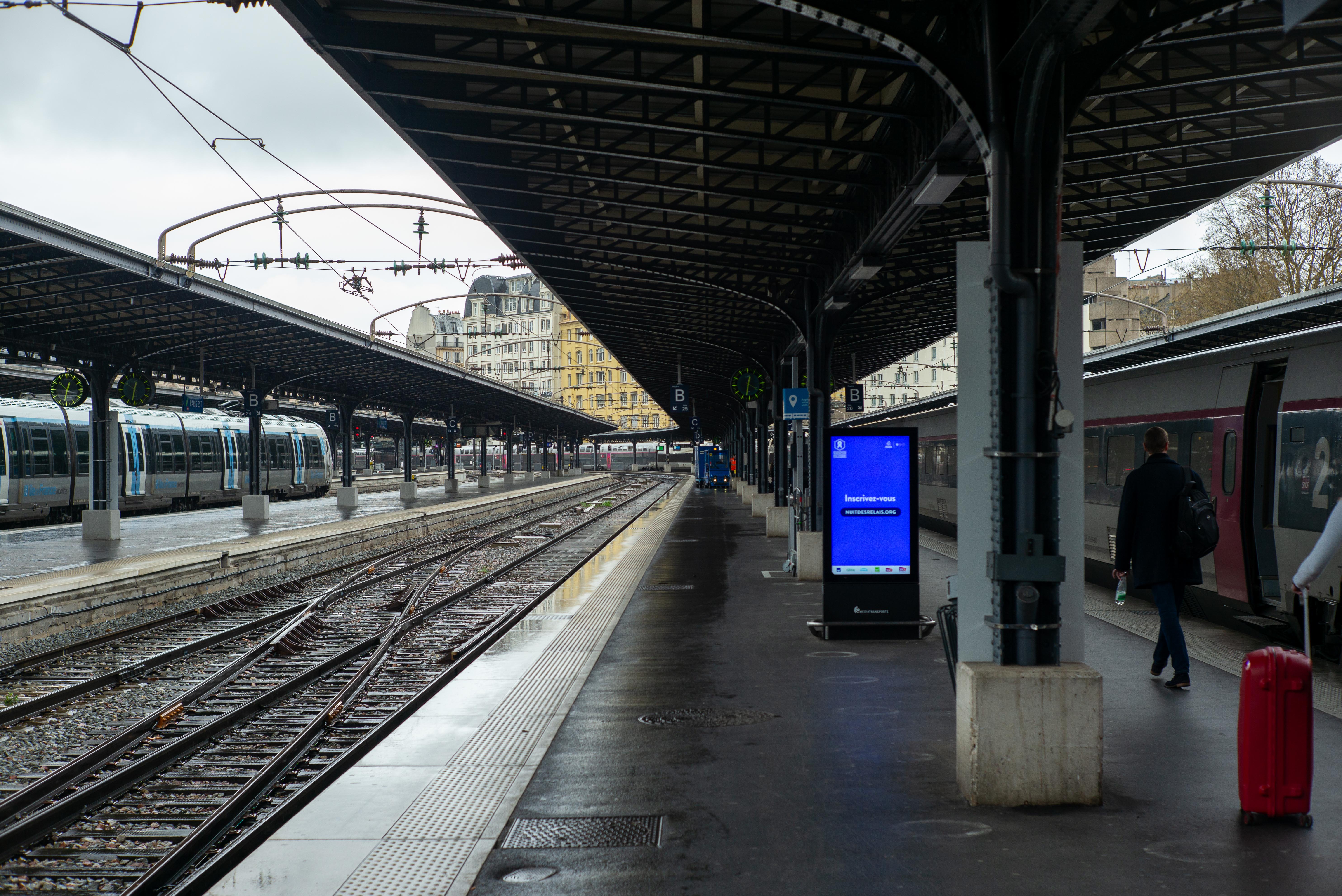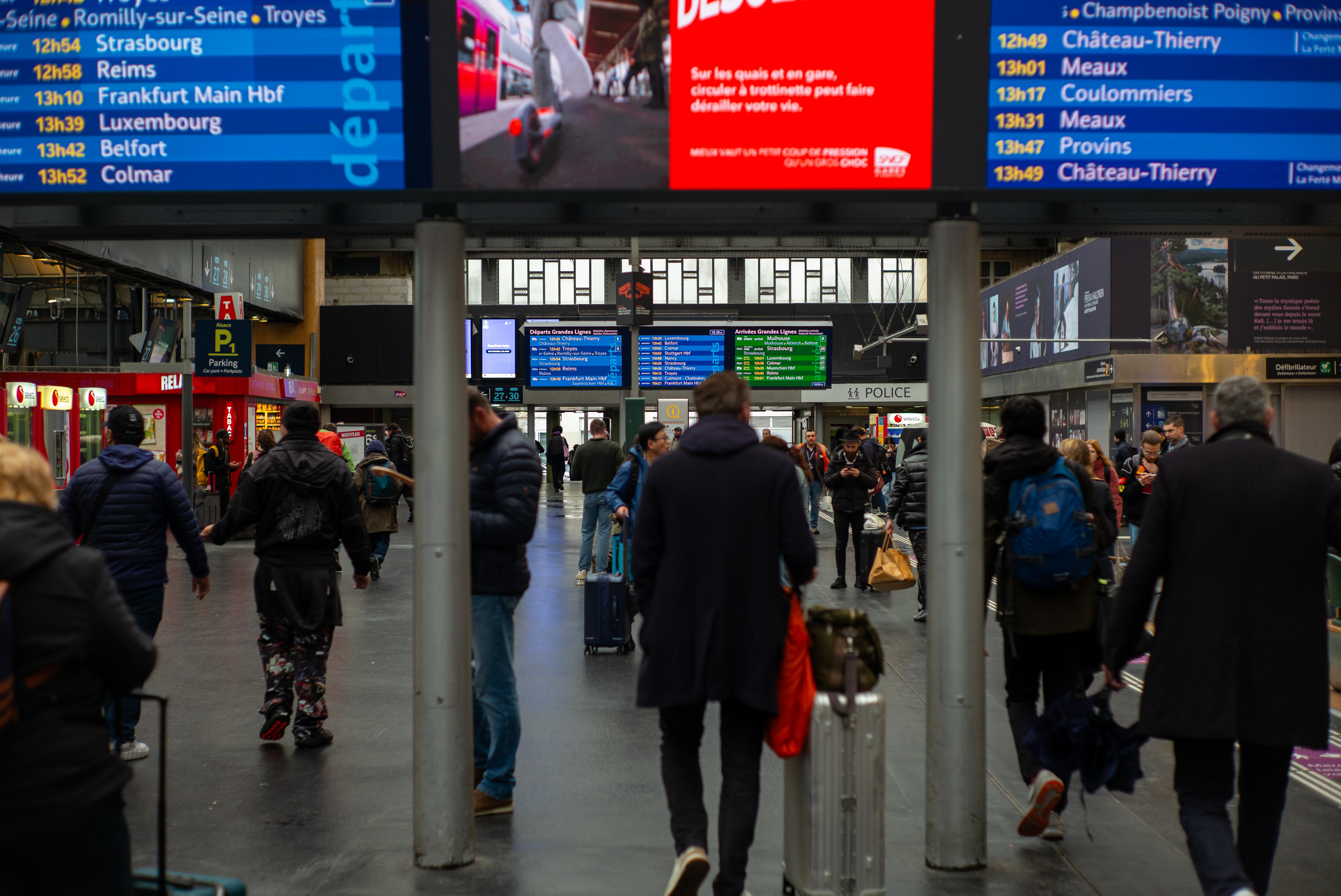 フランスの駅の場合は直前にならないと発車するホームが分からないので電光掲示板の前で待ちます。