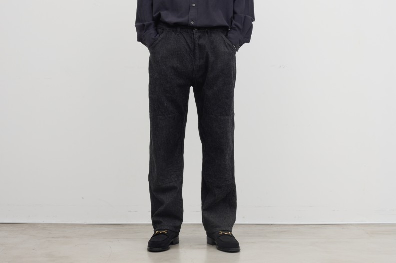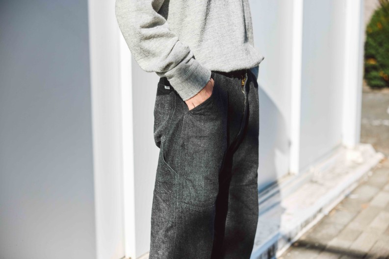 keylimeオリジナルデニム、第二弾作りました。前回のものはジャケットスタイルでも穿けるスッキリしたテーパードシルエットでしたが、今回はワイドシルエットのペインターパンツ。keylime Denim Painter Pants 素材は前回と同じ生機のブラックデニム。防...